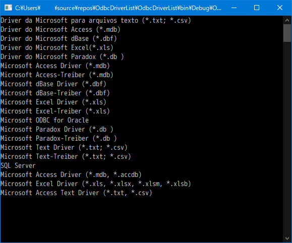 C#で odbccp32.dll の SQLGetInstalledDrivers API を呼び出し、ODBCドライバの一覧を画面に表示するコンソールアプリケーションの記事になります。